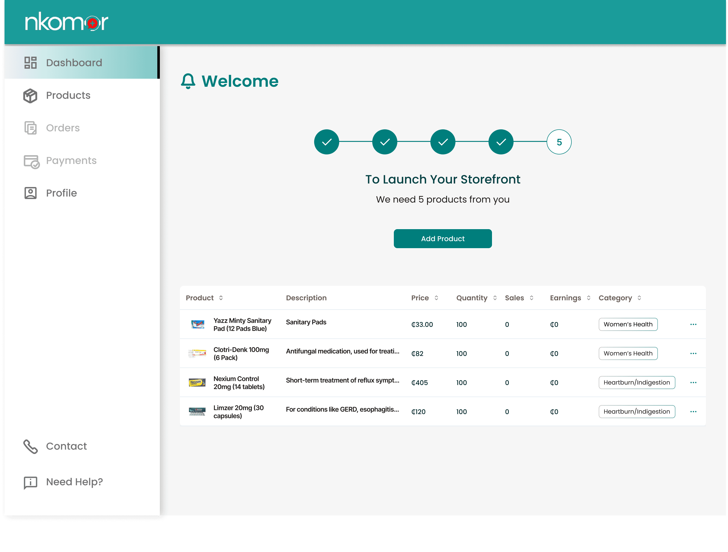 "You need to add 5 medicine products to launch your store."