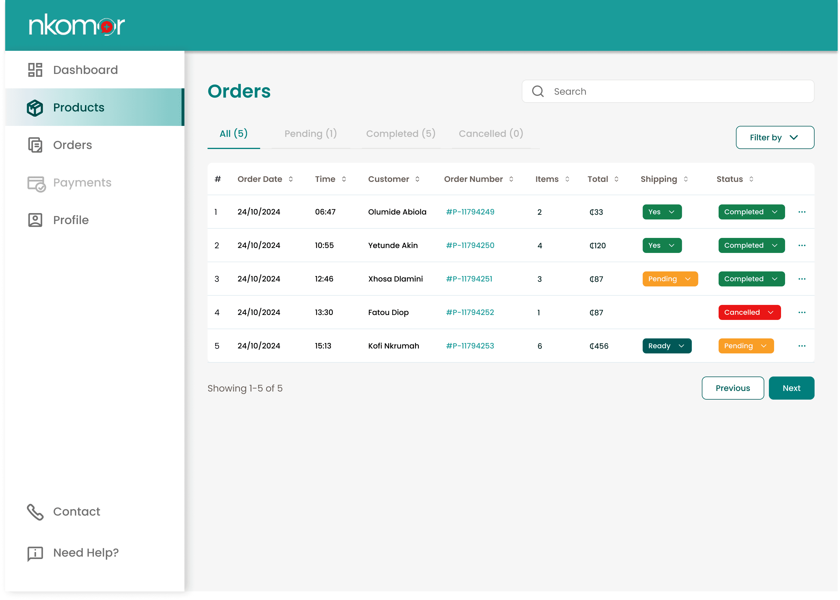 Orders list with clear status updates. No complex filters.